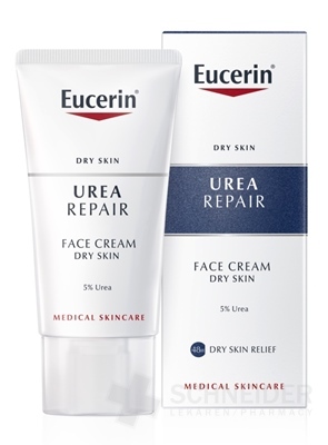 Denný krém na tvár. Zloženie s kombináciou 5 % urey, ceramidov a prirodzených hydratačných látok na rýchlu úľavu od suchej a napätej pleti.
