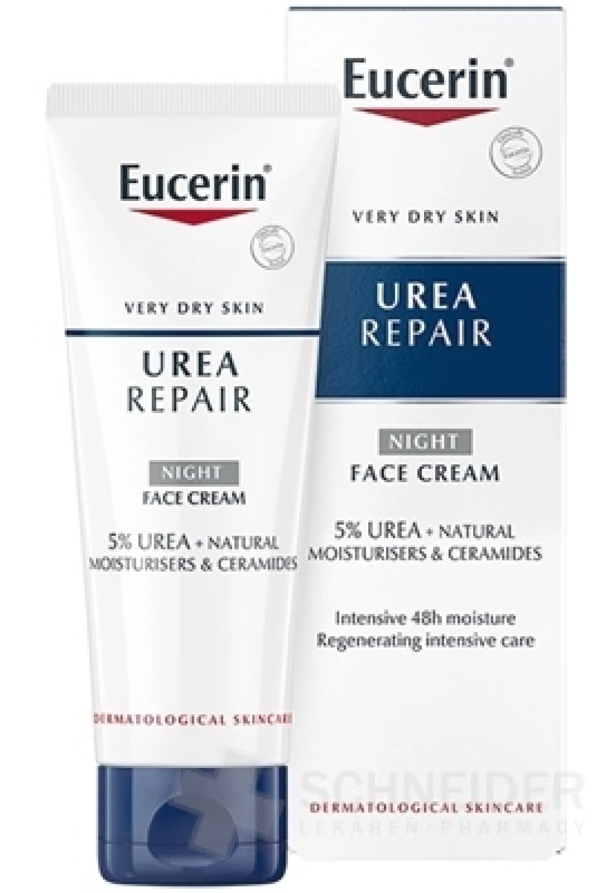 Nočný krém na tvár. Zloženie s kombináciou 5 % urey, ceramidov a prirodzených hydratačných látok na rýchlu úľavu od suchej a napätej pleti.